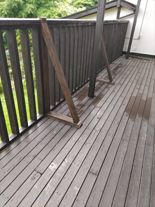 別荘の2階、ベランダはリフォーム以来ペンキもなくなって、近くのカインズには同じ色を買ってきて、毎年を塗る必要あるだね、しかも木材で建てるので、結構お客様は寄りかかると倒れるため、補充しなきゃ